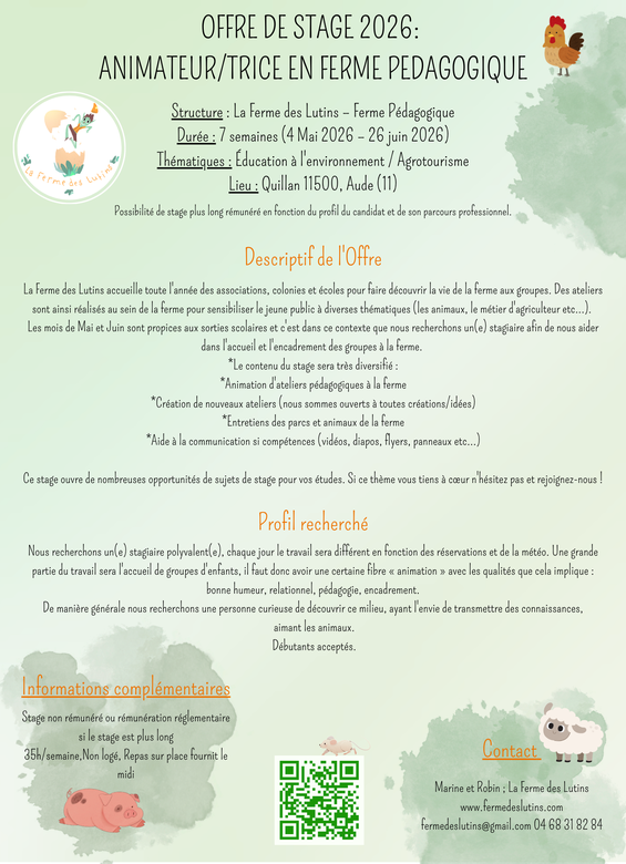 La ferme est ouverte sur réservation pour les écoles, centre de loisirs, groupes, association, EHPAD......